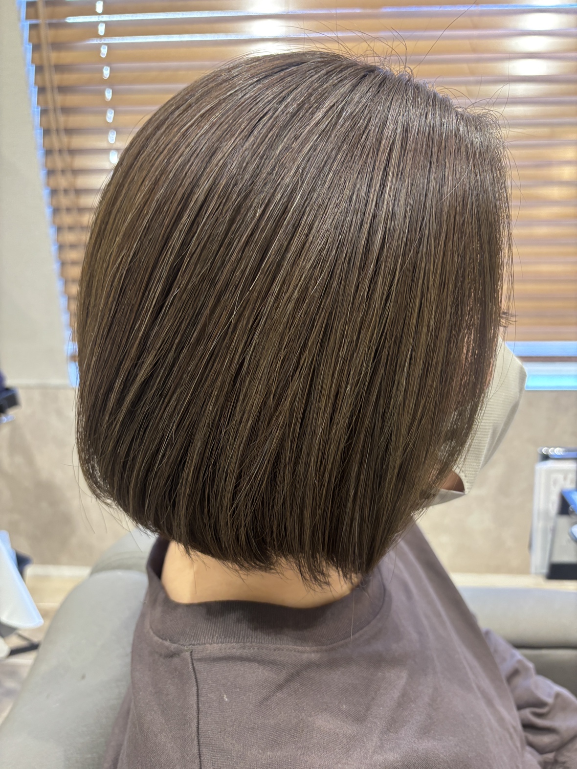 カラーリングを白髪ぼかしにして、ハイライトをブリーチ使っていれることなく、白髪を活かしてハイライト風に見えるようにカラーリングを続けています