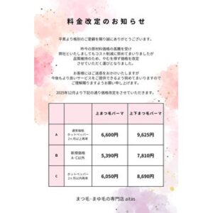 2025年12月1日よりまつ毛パーマの料金を改定させていただきます。